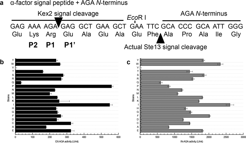 2、Improving the Secretory Expression of an -Galactosidase from Aspergillus niger in Pichia pastoris - Scientific Figure on ResearchGate. Available from: https://www.researchgate.net/figure/a-The-Kex2-signal-peptide-cleavage-site-The-extracellular-b-and-intracellular-c_fig5_306394202 [accessed 6 Jan 2025]